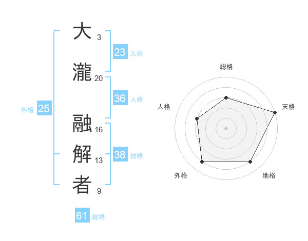 大瀧 融解者さんを姓名の画数から五運を鑑定
