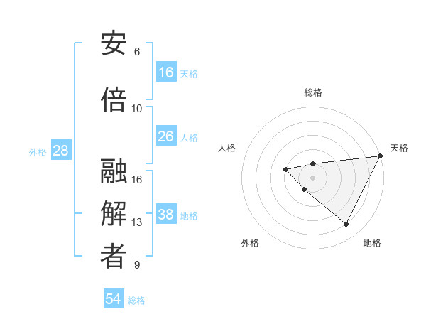 安倍 融解者さんの天格は16画の5点!