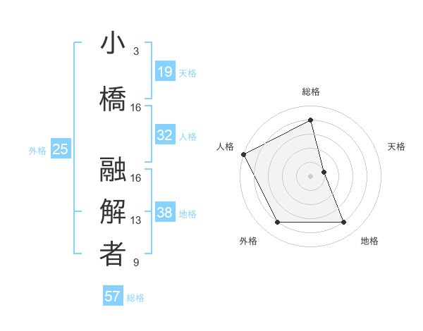 小橋 融解者さんの総格は57画の4点!