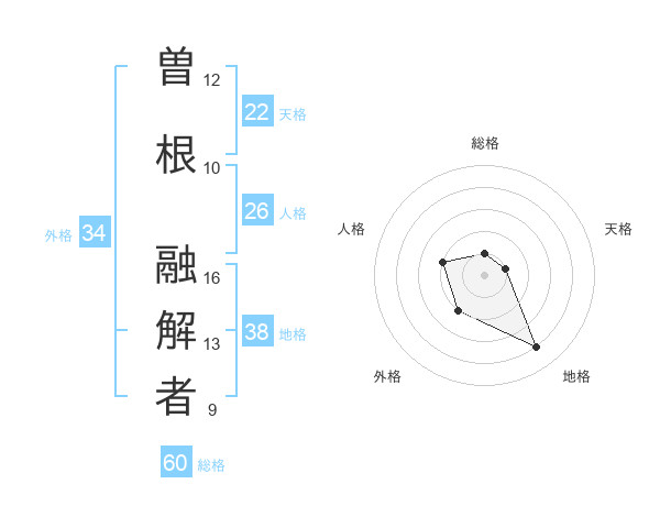 曽根 融解者さんを姓名の画数から五運を鑑定