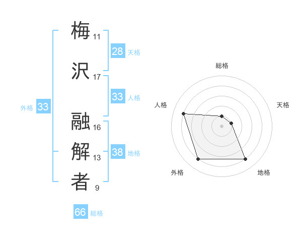 梅沢 融解者さんの総格は66画の1点!