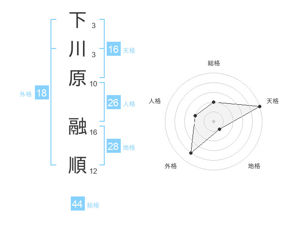 下川原 融順さんの総格は44画の2点!