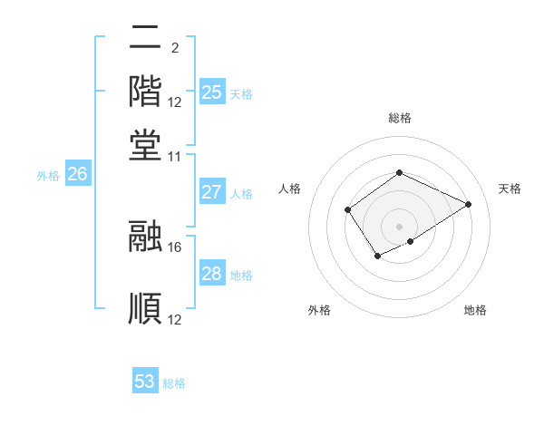 二階堂 融順さんを姓名の画数から五運を鑑定