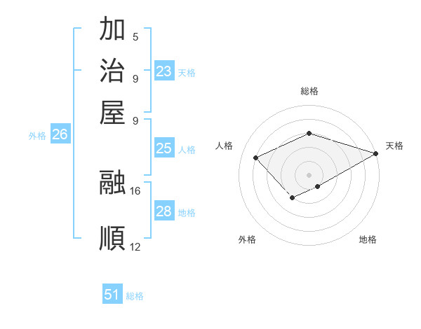 加治屋 融順さんの総格は51画の3点!