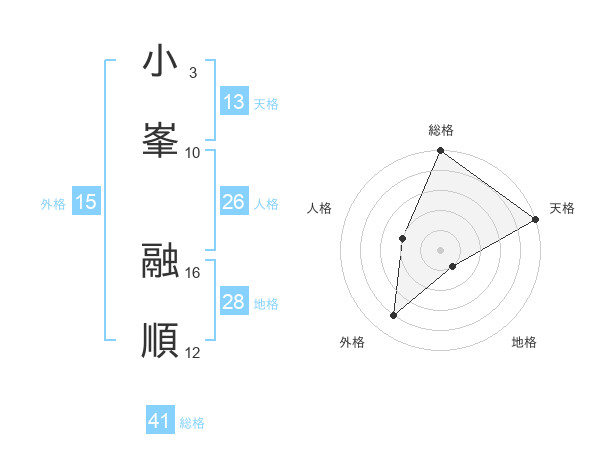小峯 融順さんの天格は13画の5点!