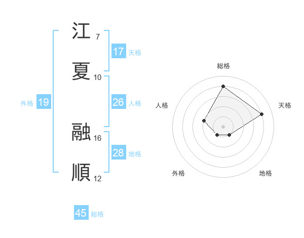 江夏 融順さんの総格は45画の4点!