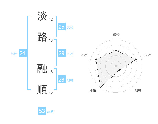 淡路 融順さんの総格は53画の3点!