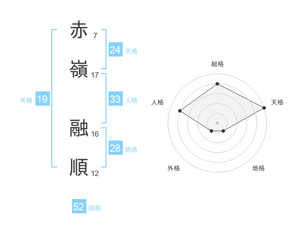 赤嶺 融順さんを姓名の画数から五運を鑑定