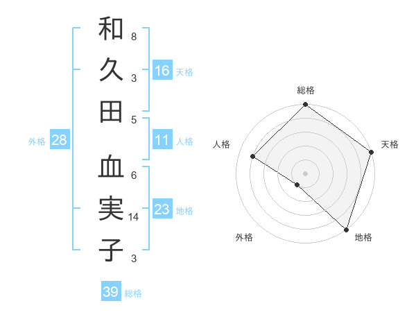 和久田 血実子さんを姓名の画数から五運を鑑定