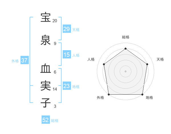 宝泉 血実子さんを姓名の画数から五運を鑑定