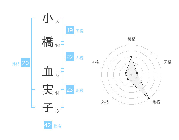 小橋 血実子さんを姓名の画数から五運を鑑定