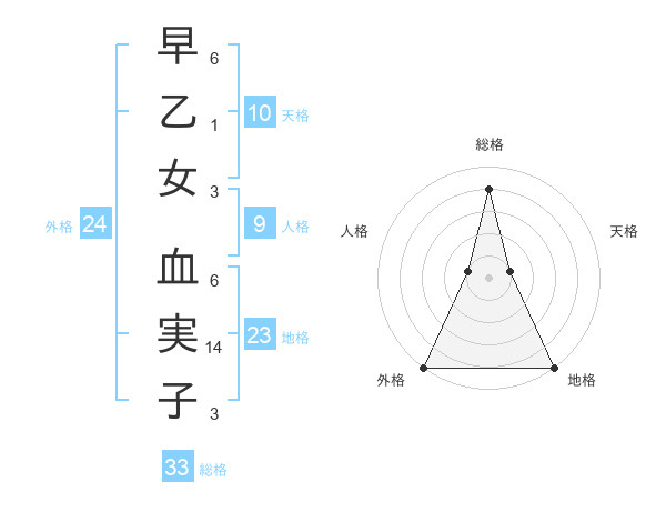 早乙女 血実子さんを姓名の画数から五運を鑑定