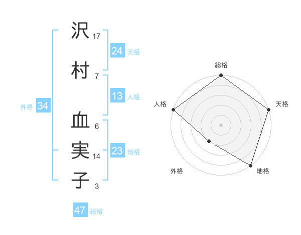 沢村 血実子さんを姓名の画数から五運を鑑定
