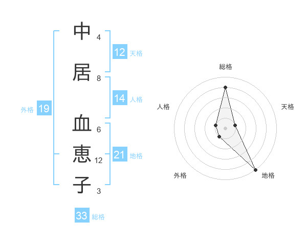 中居 血恵子さんを姓名の画数から五運を鑑定