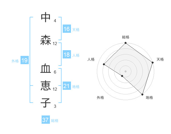 中森 血恵子さんを姓名の画数から五運を鑑定