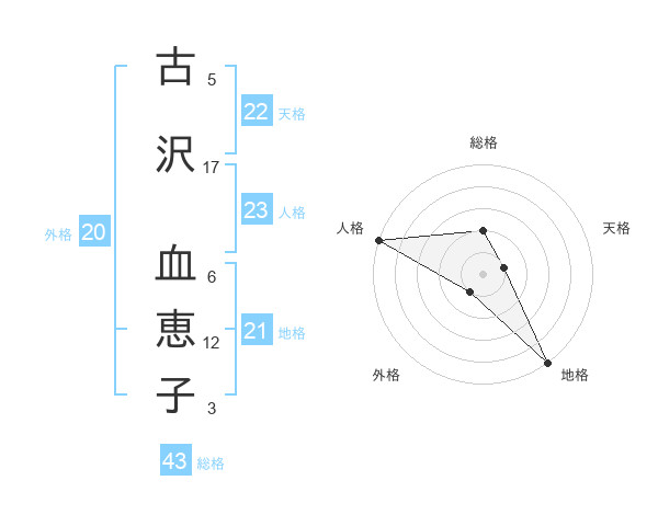 古沢 血恵子さんを姓名の画数から五運を鑑定