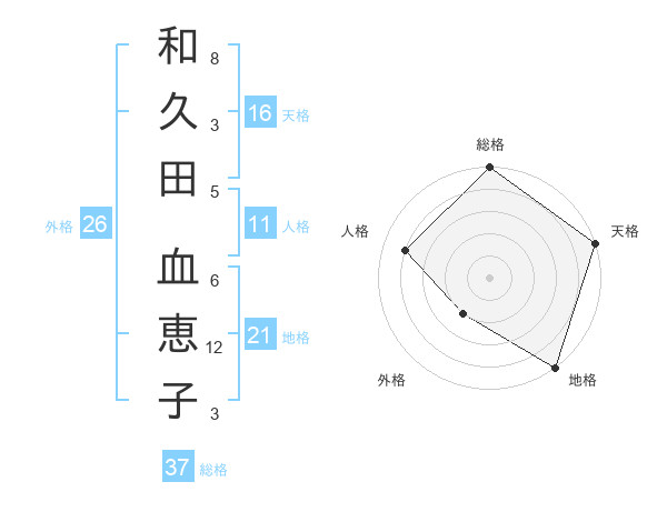 和久田 血恵子さんの天格は16画の5点!