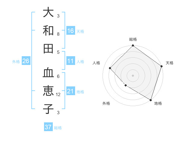 大和田 血恵子さんを姓名の画数から五運を鑑定