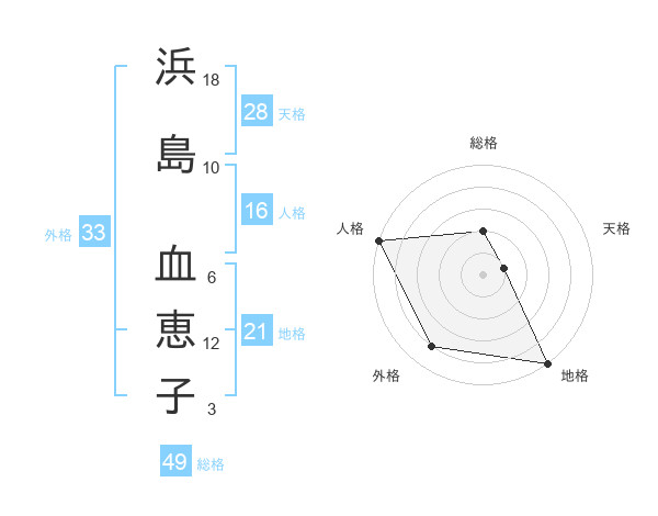 浜島 血恵子さんの天格は28画の1点!