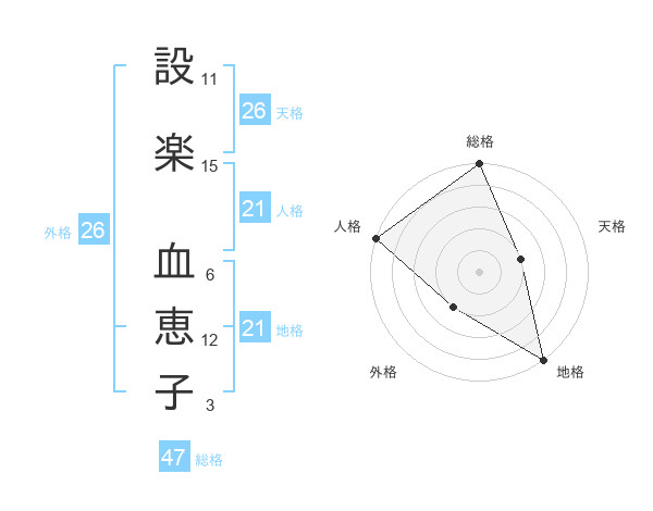 設楽 血恵子さんを姓名の画数から五運を鑑定