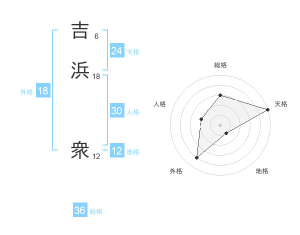 吉浜 衆さんの総格は36画の3点!