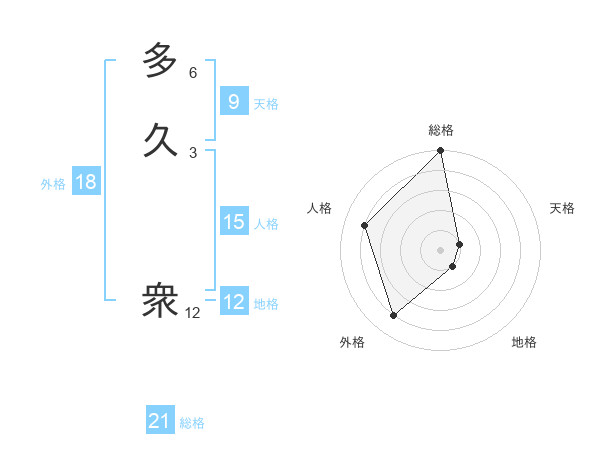 多久 衆さんの総格は21画の5点!