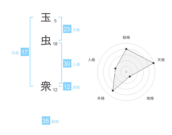 玉虫 衆さんを姓名の画数から五運を鑑定