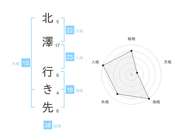 北澤 行き先さんを姓名の画数から五運を鑑定
