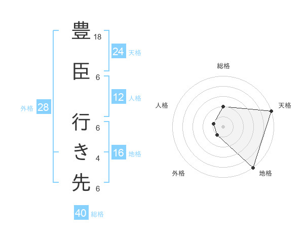 豊臣 行き先さんを姓名の画数から五運を鑑定