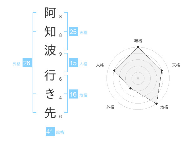 阿知波 行き先さんを姓名の画数から五運を鑑定