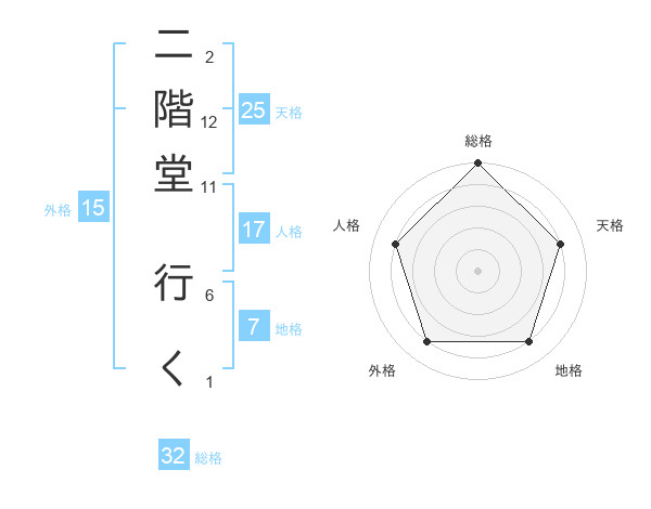 二階堂 行くさんの外格は15画の4点!