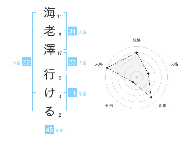 海老澤 行けるさんの総格は45画の4点!