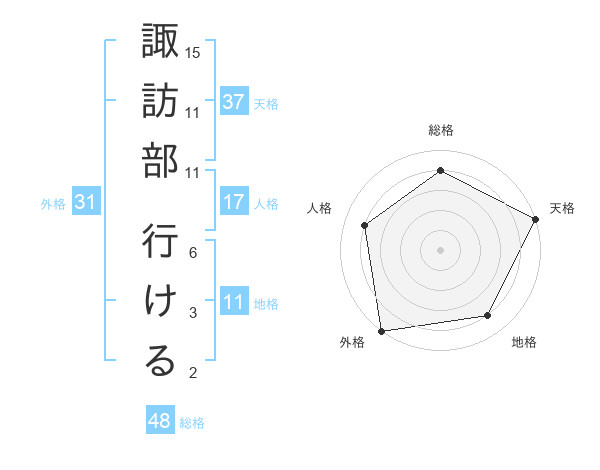 諏訪部 行けるさんを姓名の画数から五運を鑑定