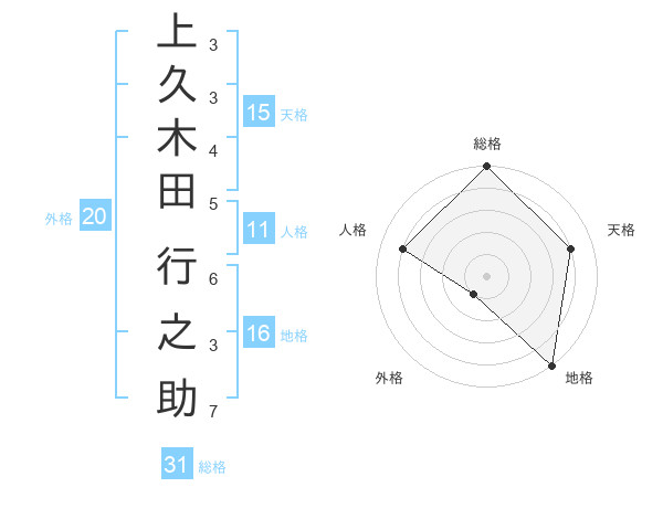 上久木田 行之助さんの総格は31画の5点!