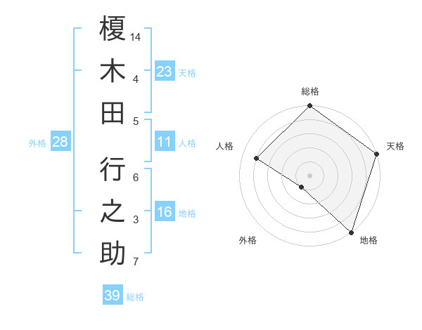 榎木田 行之助さんを姓名の画数から五運を鑑定