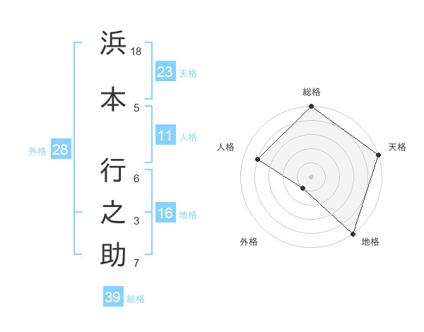 浜本 行之助さんを姓名の画数から五運を鑑定
