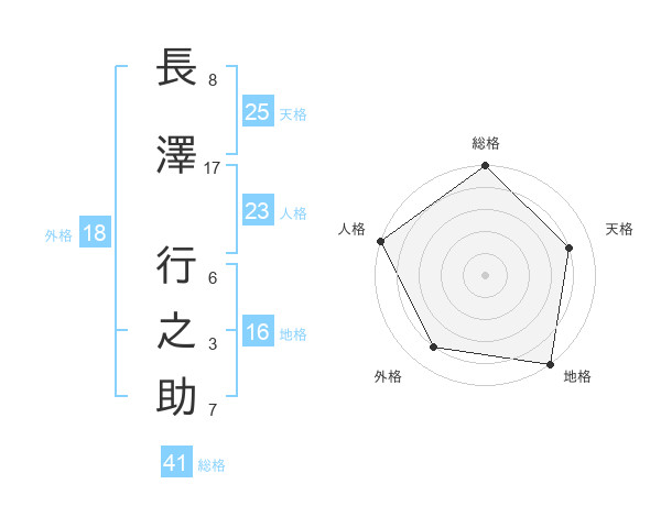 長澤 行之助さんを姓名の画数から五運を鑑定