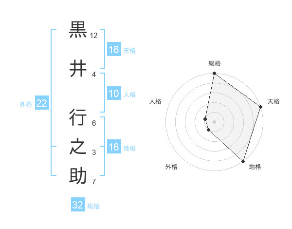 黒井 行之助さんを姓名の画数から五運を鑑定