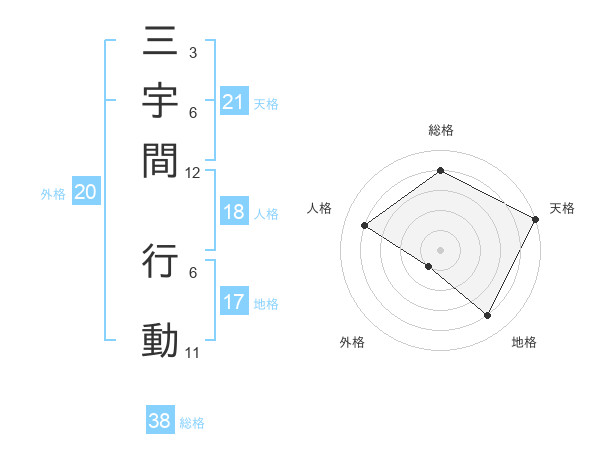 三宇間 行動さんの総格は38画の4点!