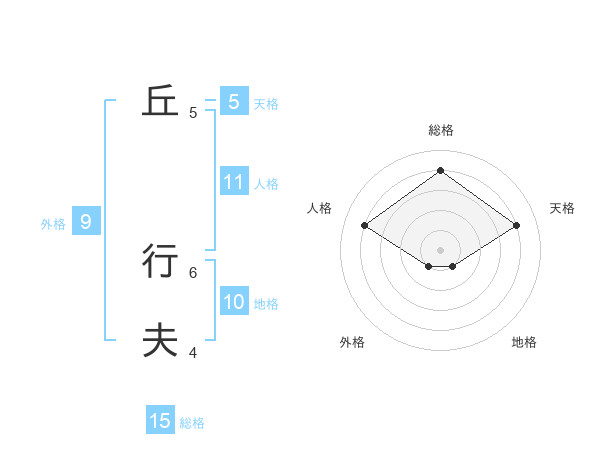 丘 行夫さんの総格は15画の4点!