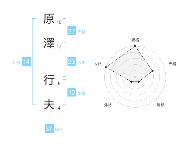 原澤 行夫さんの総格は37画の5点!