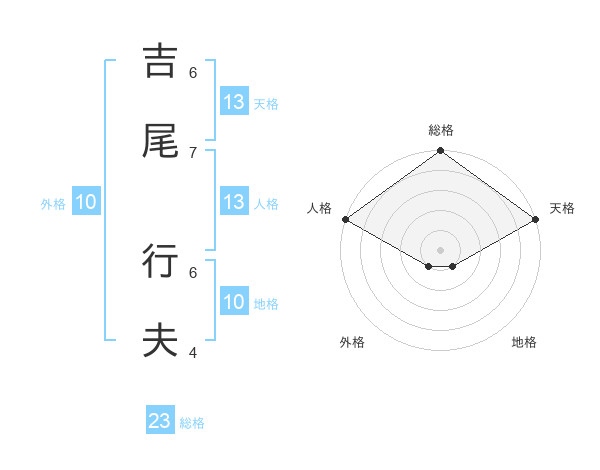 吉尾 行夫さんの天格は13画の5点!