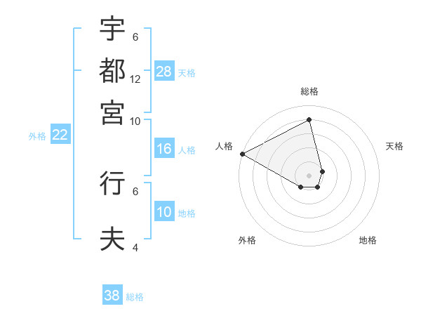 宇都宮 行夫さんを姓名の画数から五運を鑑定