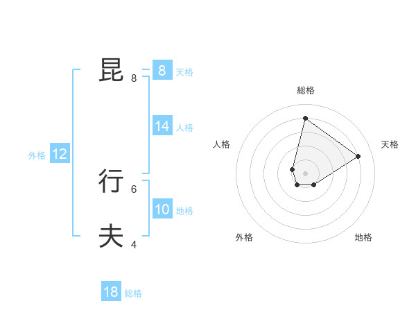 昆 行夫さんの総格は18画の4点!