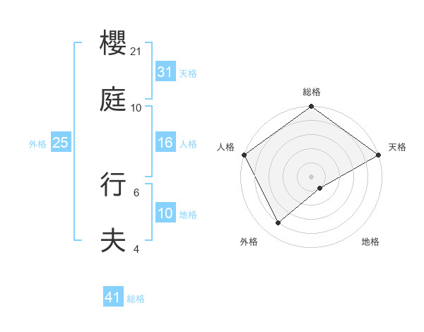 櫻庭 行夫さんを姓名の画数から五運を鑑定