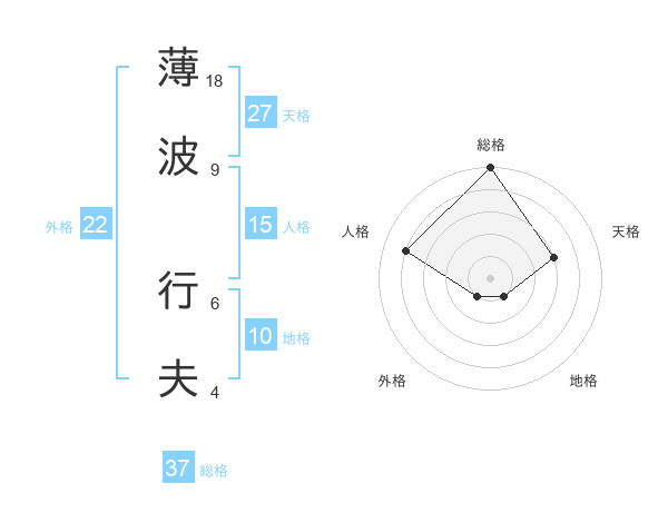 薄波 行夫さんの総格は37画の5点!