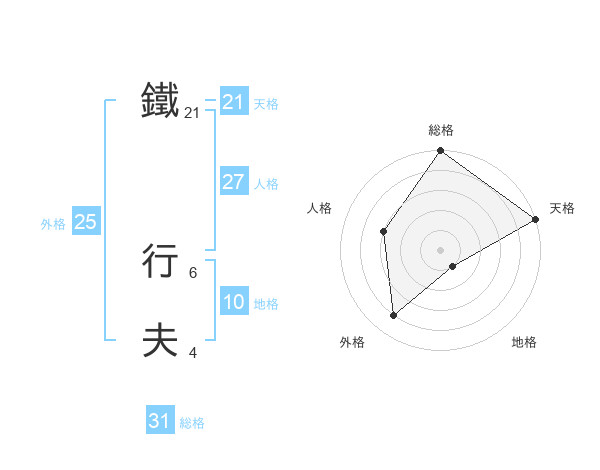 鐵 行夫さんの総格は31画の5点!