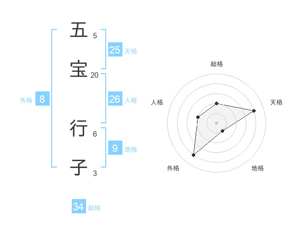 五宝 行子さんの外格は8画の4点!