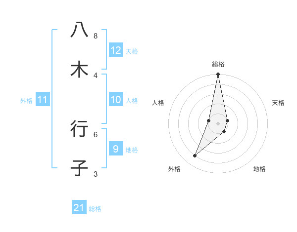 八木 行子さんの総格は21画の5点!