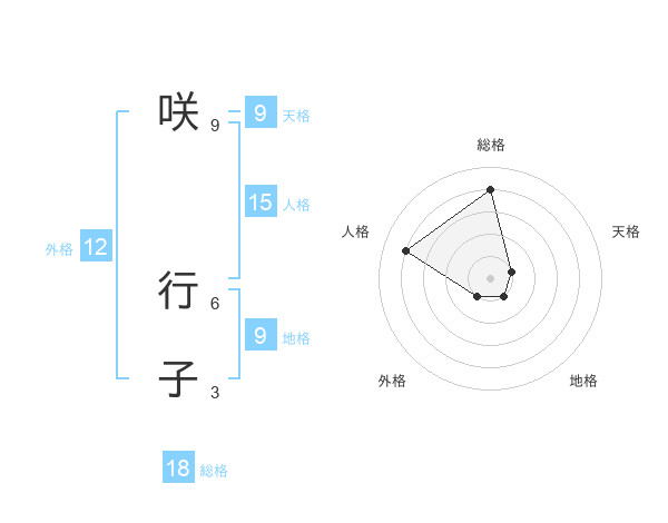 咲 行子さんの総格は18画の4点!